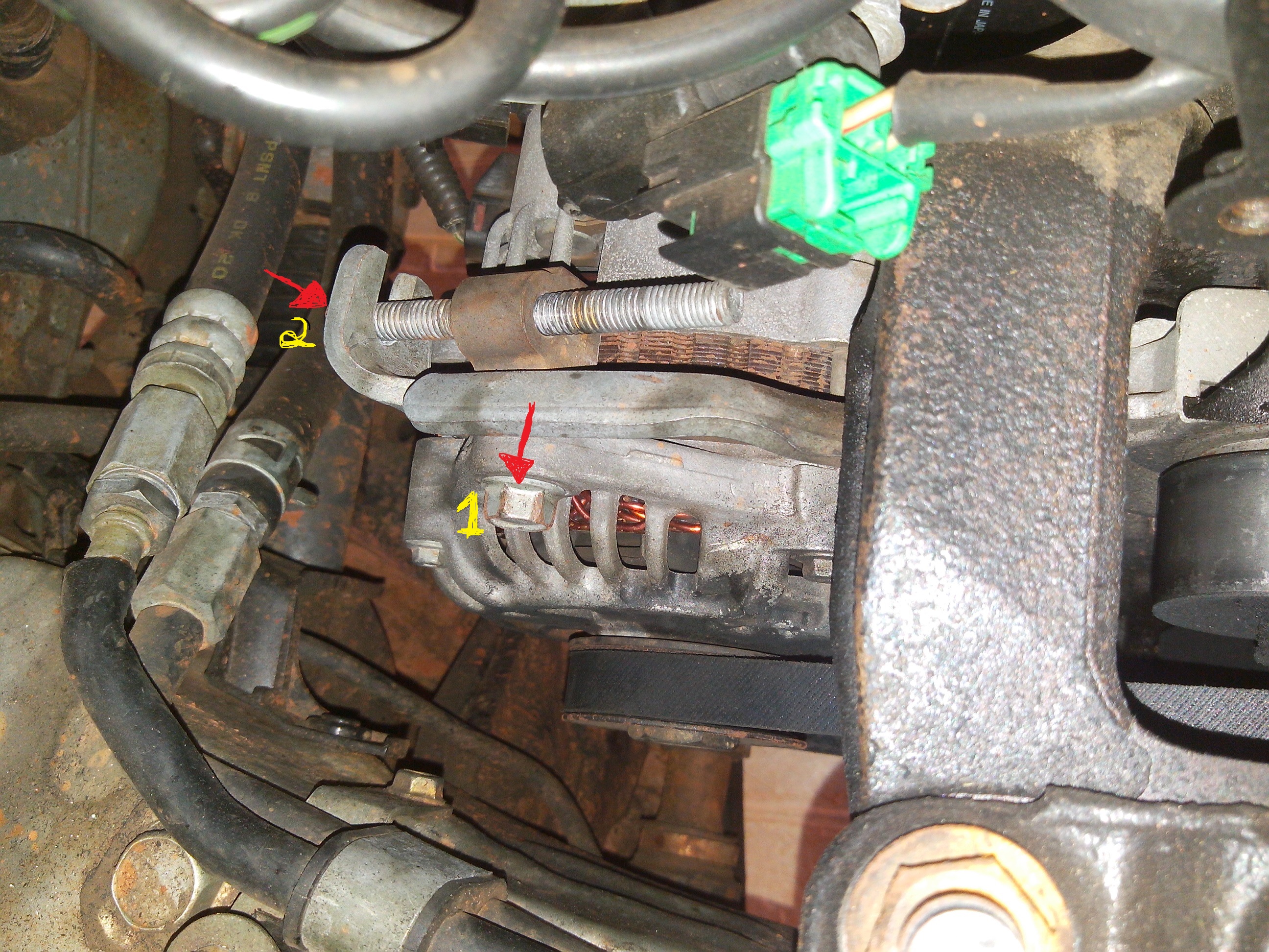 - alternador tem 2 parafusos chave 12 o 1 é o que solta o alternador e o 2 é para esticar quando esta cantando a correia