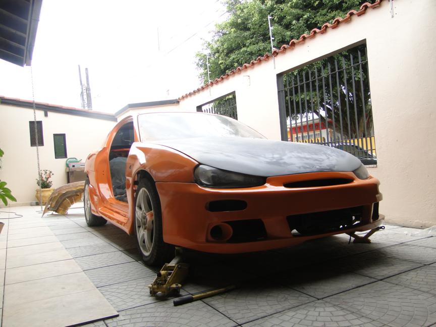 E olha acredito que foi quase tudo feito em casa, aerofolio, pintura, instalação das saias laterais, os para-choques foram mandados fazer mais como o cara que faz é meio porco uns 40% do para-choque é re-feito em casa, eletrica, som... muita coisa que ainda vai ser feito hehe